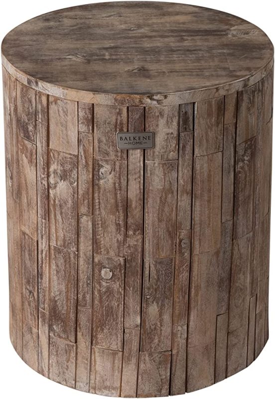 Patio Sense 62420 Elyse Round Rustic Garden Stool Wood Outdoor Seating & End Table Portable Adaptable Outdoor Furniture – Seasoned Patina Finish129.99